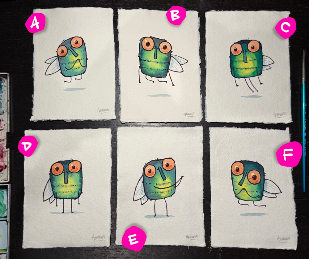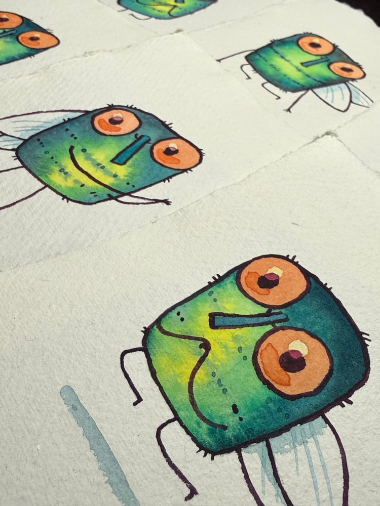 Watercolour on A6 (105mm x 148mm) 150gsm cotton rag paper.