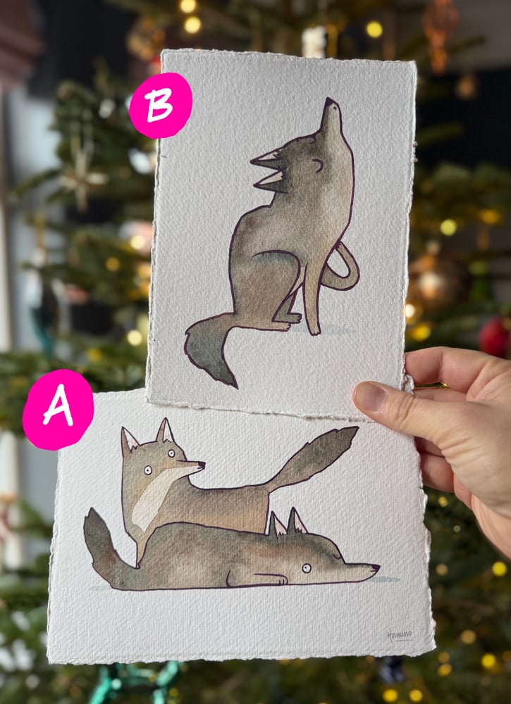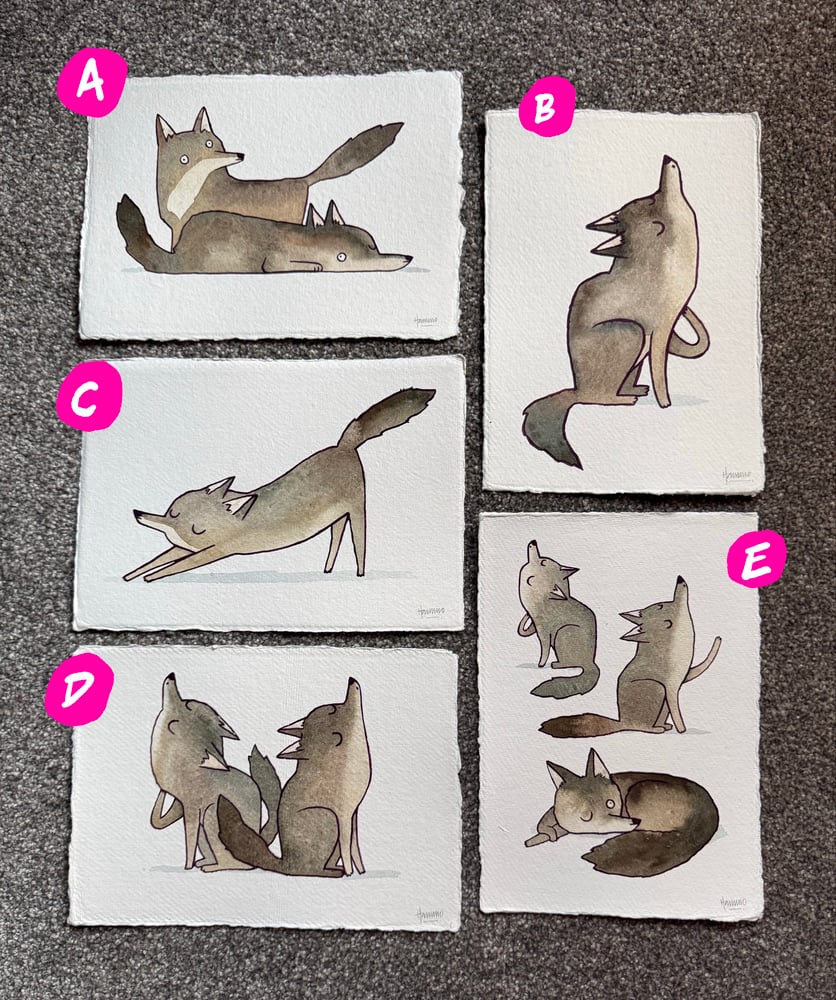 A5 (148mm x 210mm) on beefy 640gsm cotton rag paper. A, D & E are £38 each B & C are £35 each